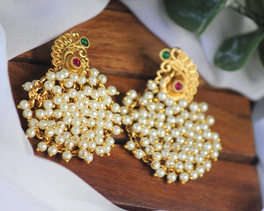 Ruby and Green cluster Pearl Earring