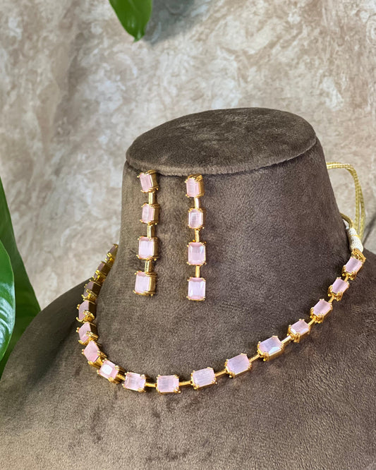 Tripura Pink Stone Necklace with Earring