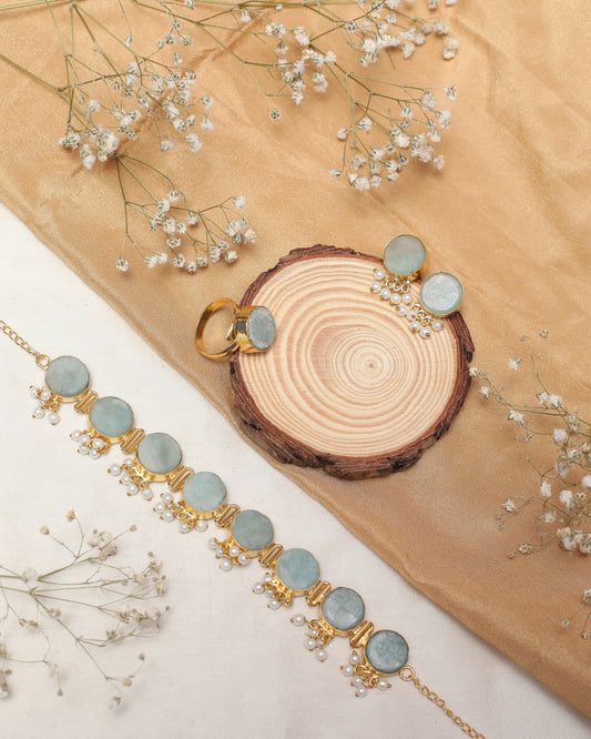 Raw Stone with Cluster of pearl Necklace / choker with Stud and Ring