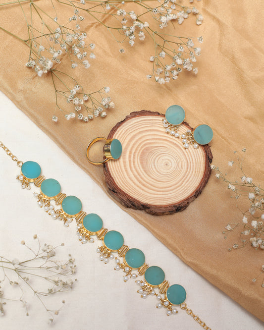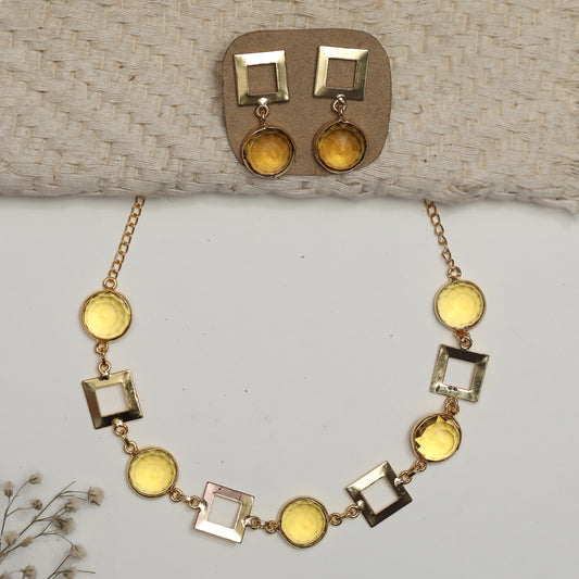 Square and Round Stone Necklace Set