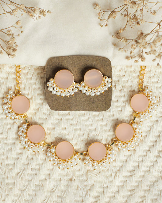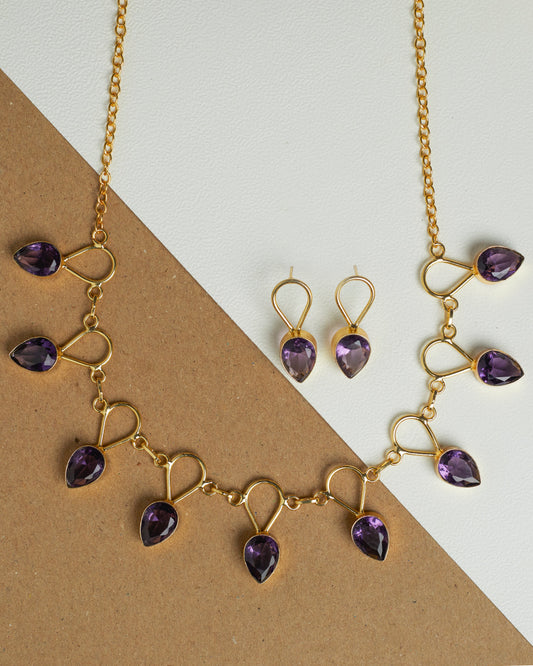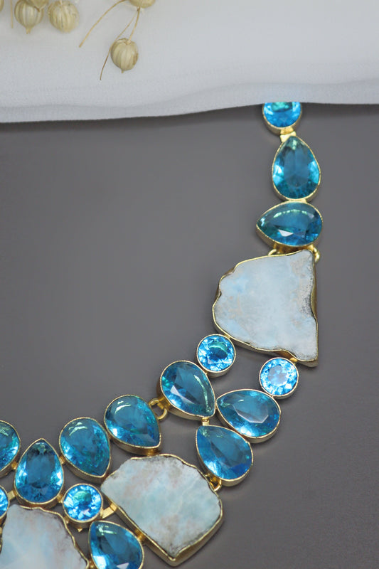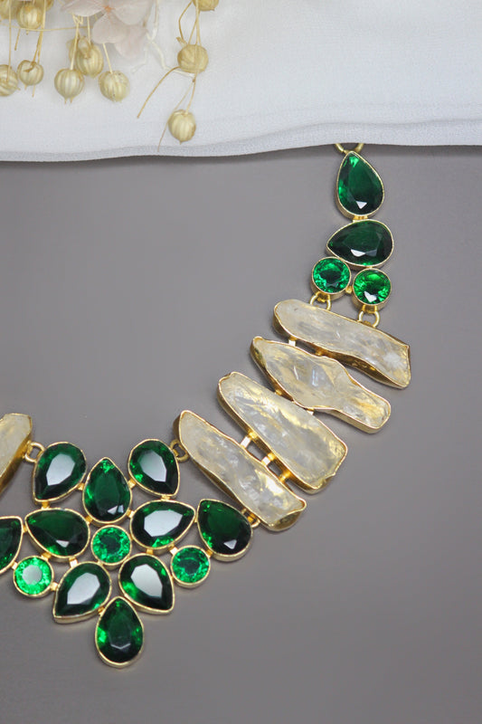 Harsh Diamond Drop Glossy Stone Neckpiece with Earring